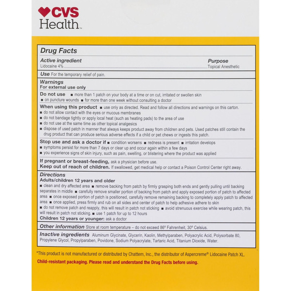 Front of Muscles, Joints & Pain Relief CVS Health Pain Relief Patch, Lidocaine, Maximum Strength, XL