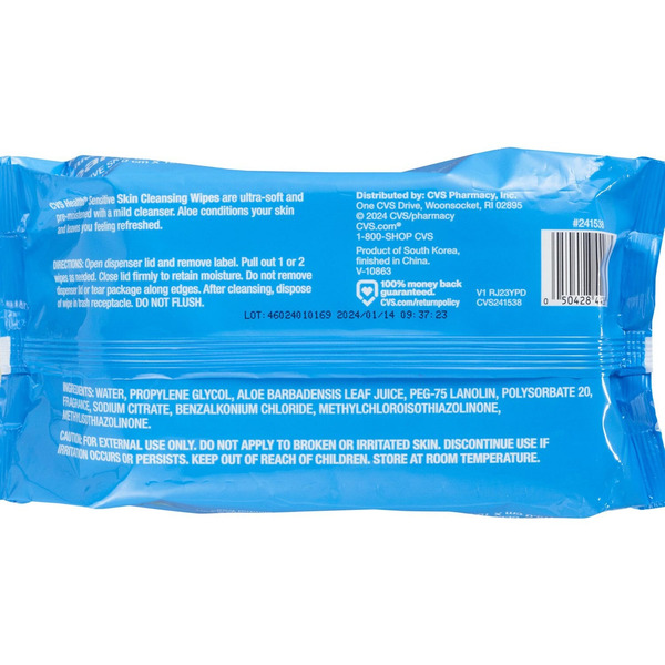 Front of Feminine Care CVS Pharmacy CVS Sensitive Cleansing Wipes, 64 CT