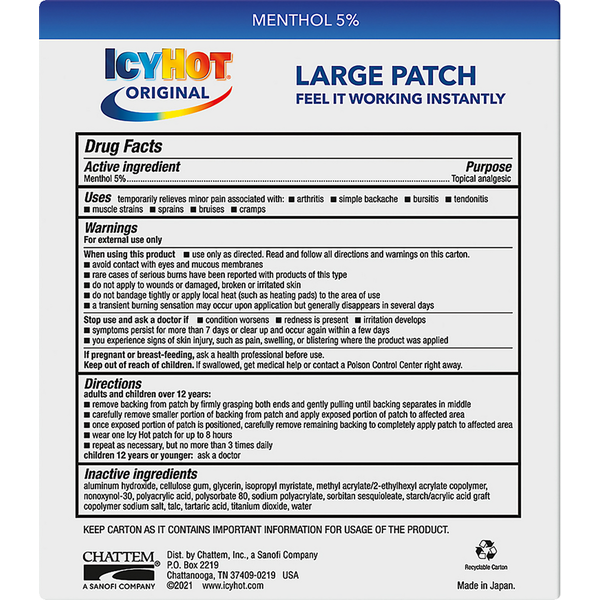 Icy Hot Pain Relief Patch, Large