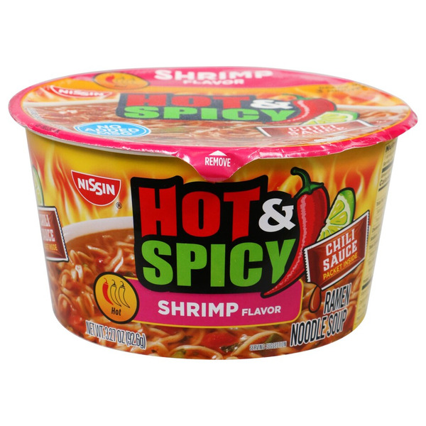 Nissin Hot & Spicy with Shrimp Ramen Noodle Soup