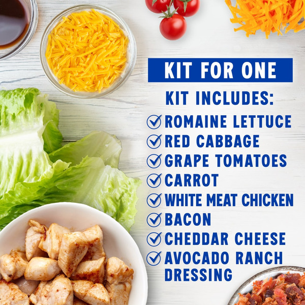 Kroger Blt Chicken Romaine Lettuce Grape Tomatoes White Meat Chicken Cheddar Cheese Bacon Red Cabbage Carrot Salad Kit For One With Avocado Ranch Dressing