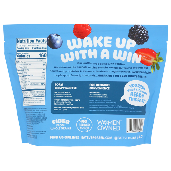Front of Evergreen Mixed Berry Berry Cobbler, Frozen, Mini Waffles