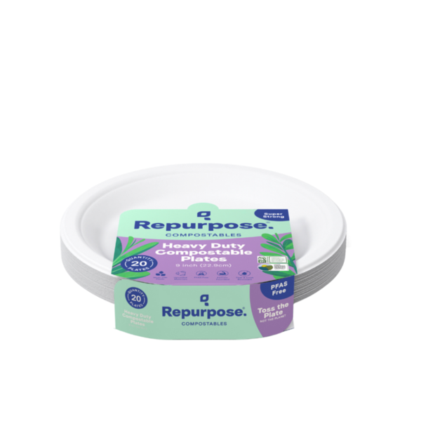 Front of Plates, Bowls, Cups & Flatware Repurpose Heavy Duty Compostable Plates, 9 in, 20 ct