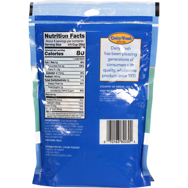 Dairy Fresh Shredded Cheese, Mozzarella, Part-Skim, Low-Moisture