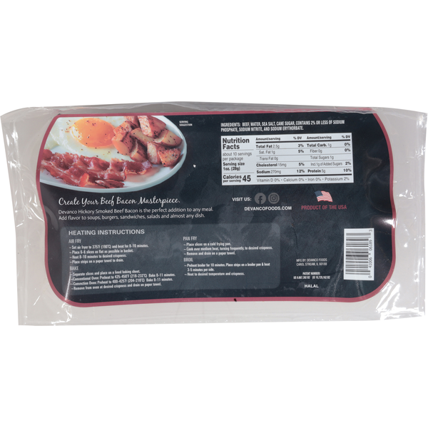 Front of Devanco Foods Hickory Smoked Beef Bacon