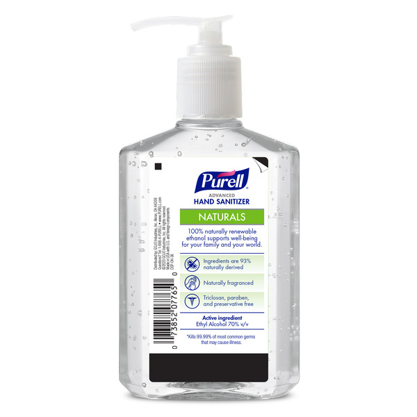 Front of Hand Care PURELL Advanced Hand Sanitizer Naturals with Plant Based Alcohol