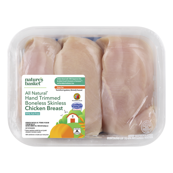 Front of Packaged Meat Nature’s Basket Skinless All Natural Boneless Chicken Breast