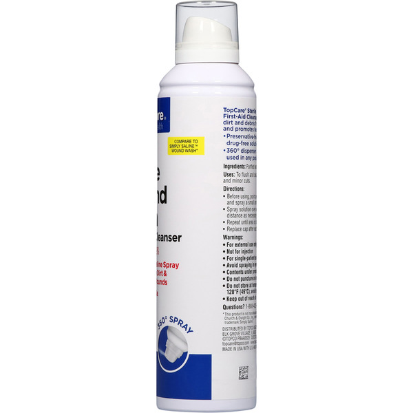 Front of First Aid TopCare Saline Wound Wash, Sterile