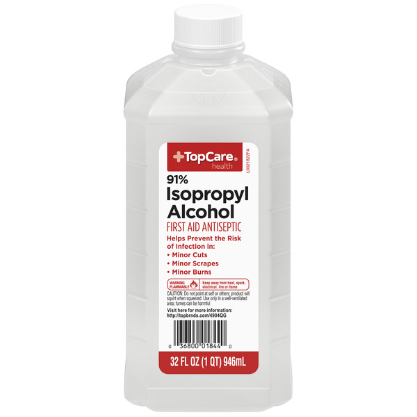 Front of TopCare Isopropyl Alcohol 91% First Aid Antiseptic