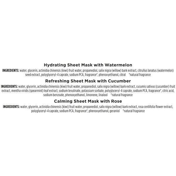 Burt's Bees Sheet Mask Bundle, Hydrating Watermelon, Calming Rose, Refreshing Cucumber; 99% Natural Origin, Single Use