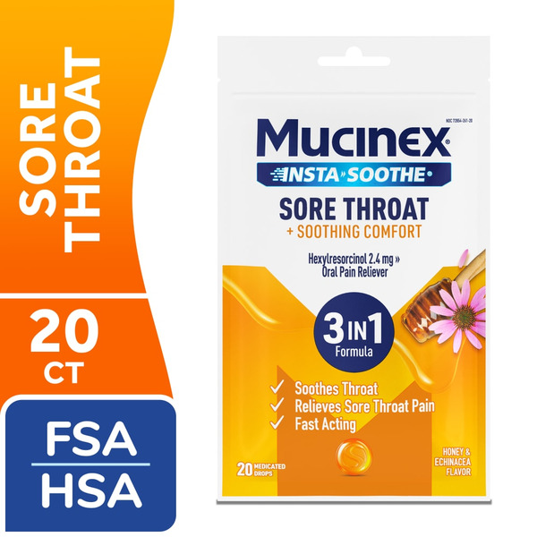 Mucinex InstaSoothe Medicated Cough Drops for Sore Throat and Cough Relief Honey & Echinacea-20 ct
