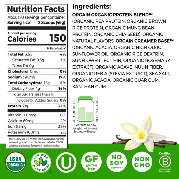 Orgain Organic Vegan 21g Protein Powder, Vanilla Bean