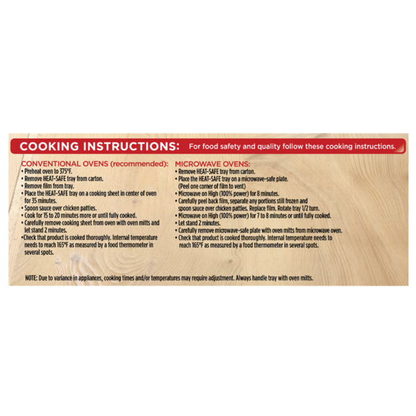 Front of Frozen Meals On‑Cor On-Cor® 6 Breaded Chicken Parmagiana Patties with Tomato Sauce Frozen Packaged Meal