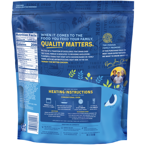 Front of Frozen Meat & Seafood Perdue Perdue Frozen Fully Cooked Breaded Chicken Breast Patties
