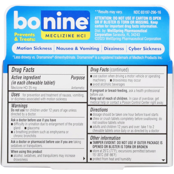 Bonine® Adult Motion Sickness Raspberry Flavored Chewable Tablets
