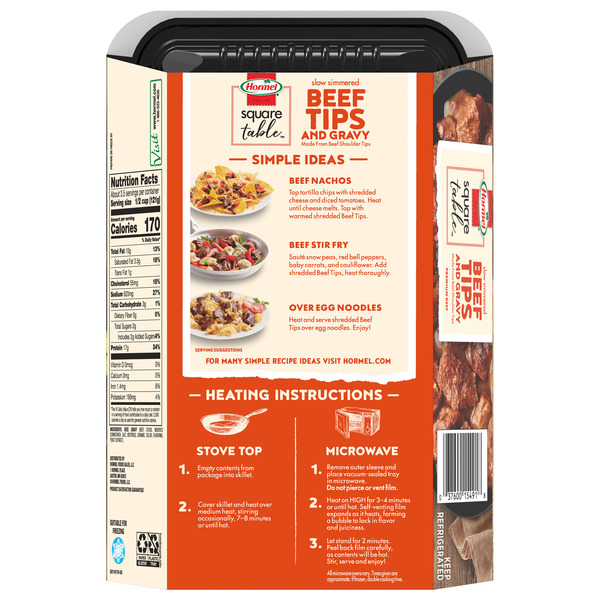 Front of Packaged Meat Hormel Hormel® Square Table™ Simmered Beef Tips and Gravy