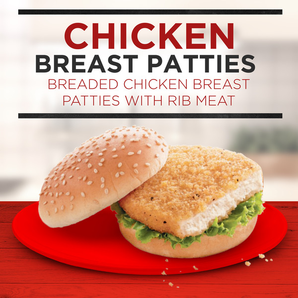 Front of Frozen Meat & Seafood Banquet Banquet Chicken Breast Patties, Frozen Meal