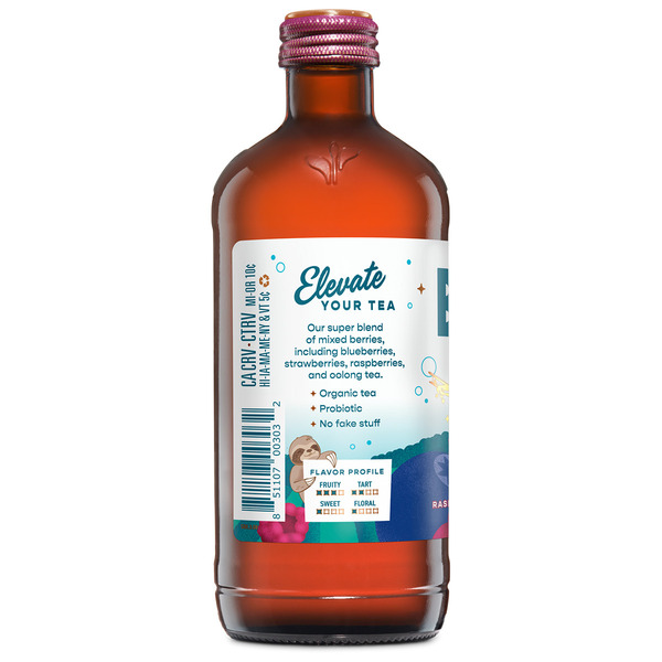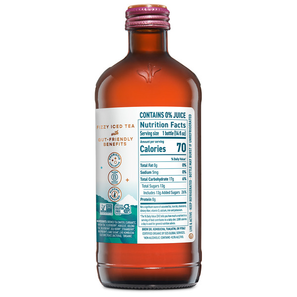 Front of Refrigerated Brew Dr. Kombucha Superberry, w/Raspberry, Blueberry & Oolong Tea