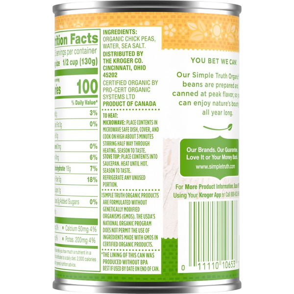 Front of Canned Meals & Beans Simple Truth Simple Truth OrganicĀ® Low Sodium Garbanzo Beans