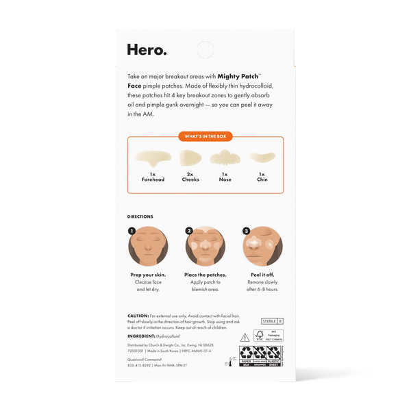 Front of Hero Cosmetics Mighty Patch Mighty Patch Face, XL Hydrocolloid Face Mask for Acne
