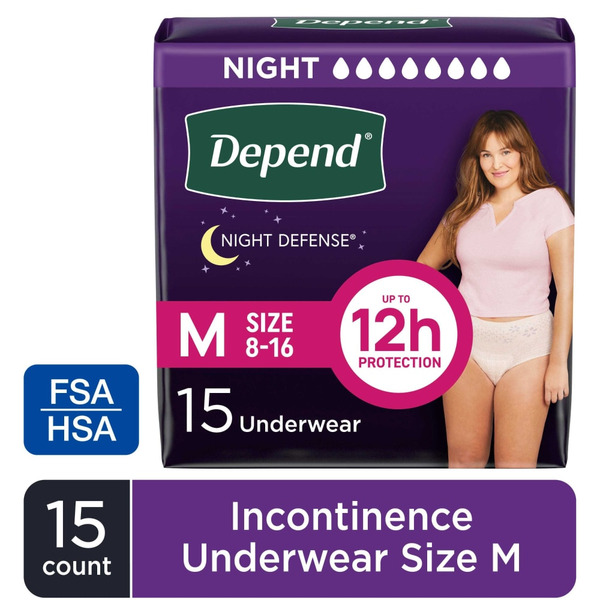 Depend Adult Incontinence Underwear Night Defense for Women, Size M