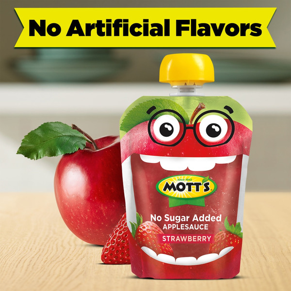 Front of Canned Fruit & Applesauce Mott's Mott's No Sugar Added Strawberry Applesauce Clear Pouches