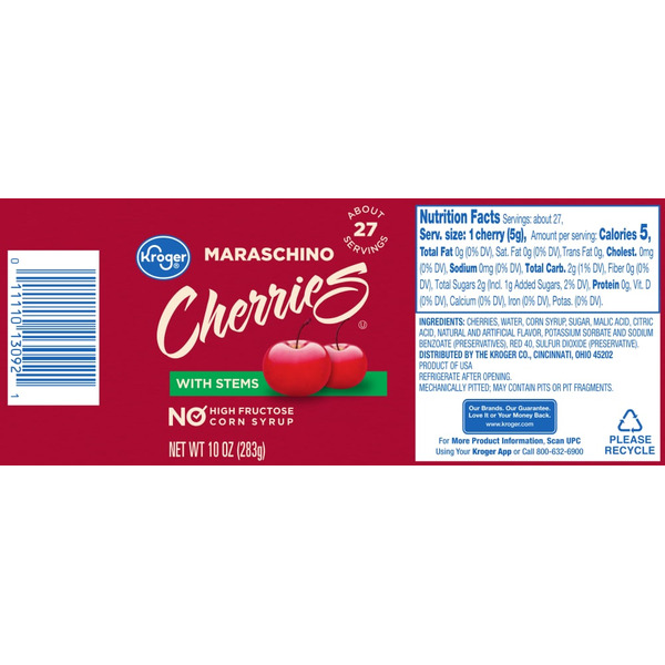 Front of Canned & Jarred Vegetables Kroger Kroger Maraschino Cherries with Stem, 10oz