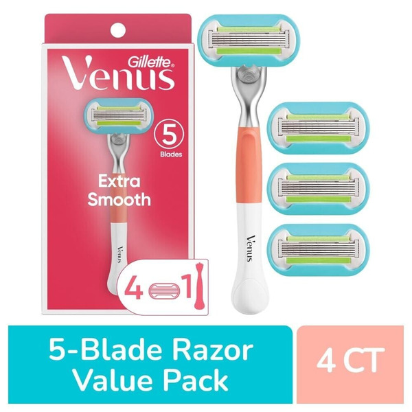 Gillette Venus Extra Smooth Women's 5-Blade Razor Handle + Blade Refill Cartridges Value Pack