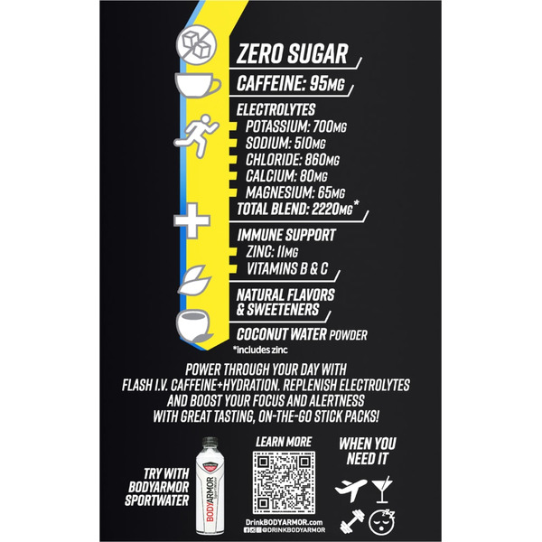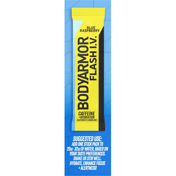 BODYARMOR Flash IV Blue Raspberry Caffeinated Zero Sugar Drink Mix Packets