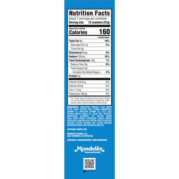 Front of Crackers CHICKEN IN A BISKIT Original Baked Snack Crackers, Lunch Snacks