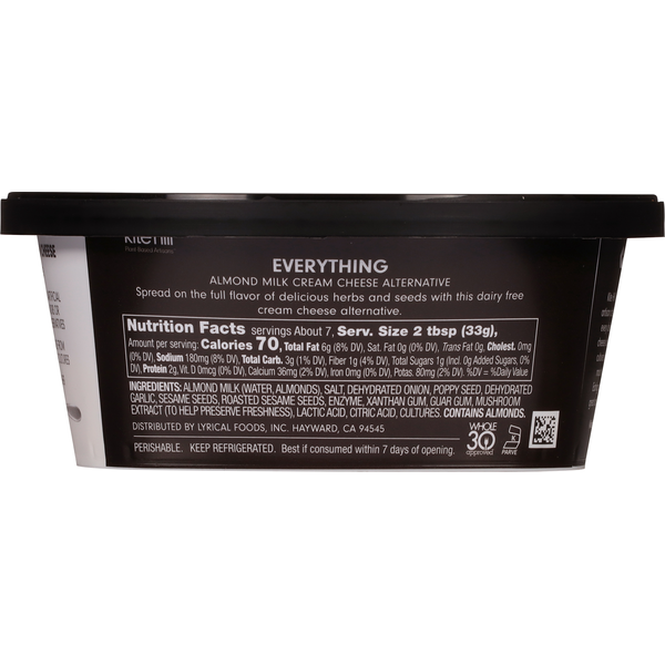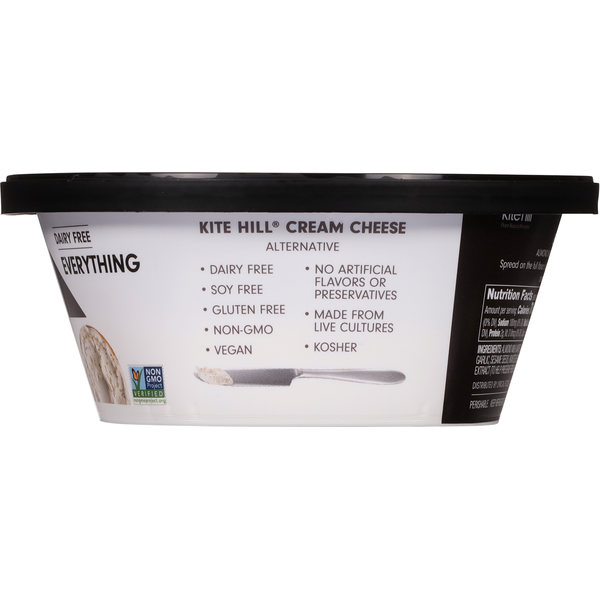 Front of Packaged Cheese Kite Hill Dairy Free Cream Cheese, Everything