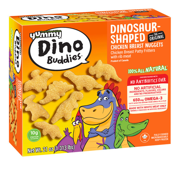 Front of Frozen Meat & Seafood Yummy Dinosaur-Shaped Chicken Breast Nuggets
