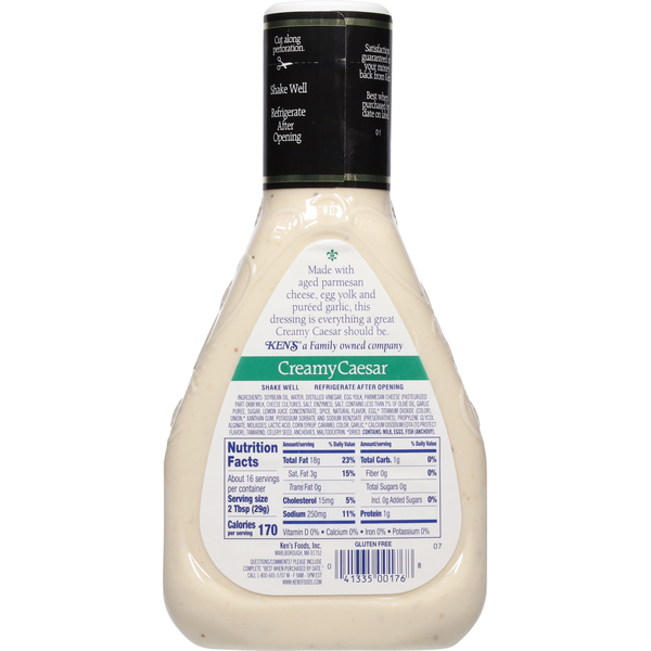 Front of Salad Dressing & Toppings Ken's Steak House Creamy Caesar Dressing