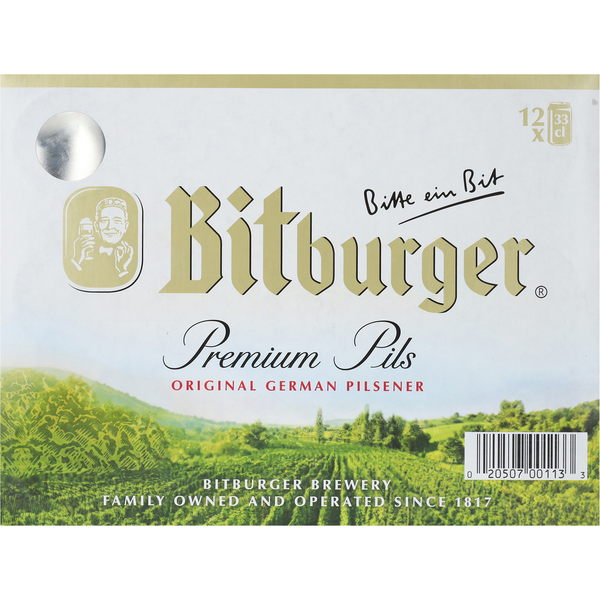 Front of Bitburger Premium Pils Original German Pilsener Beer