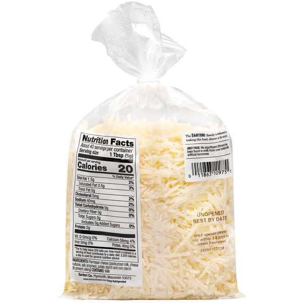 Front of Packaged Cheese Sartori Shredded Cheese, Parmesan Classic