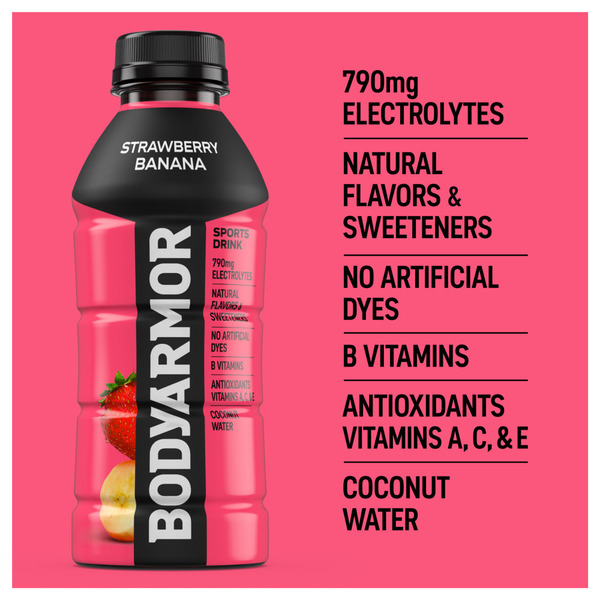 Front of Energy & Sports Drinks BODYARMOR Strawberry Banana