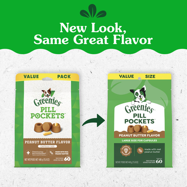 GREENIES Pill Pockets, Large Size Dog Treats, Peanut Butter Flavor, 15.8 oz. Pouch