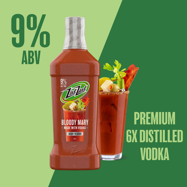 Zing Zang Bloody Mary with Vodka Cocktail, Alcoholic Ready-to-Drink Beverage