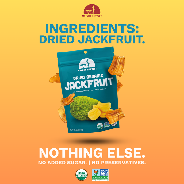 Front of Mavuno Harvest Organic Dried Jackfruit