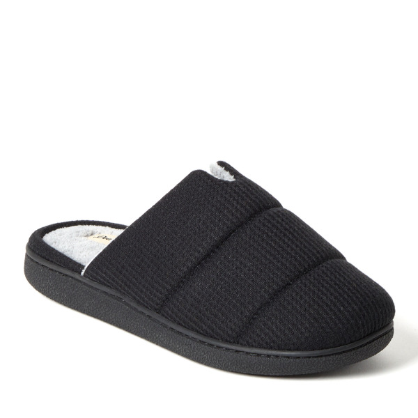 Dearfoams Waffle Knit Scuff Slippers, XL - Black