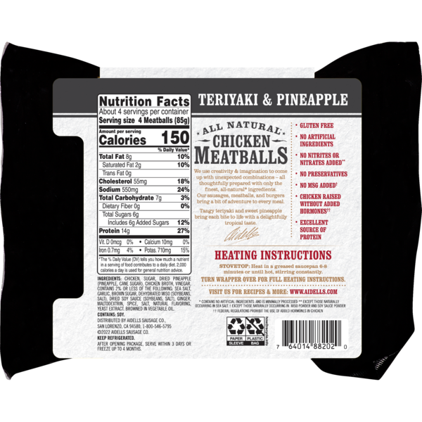 Aidells Chicken Meatballs, Teriyaki & Pineapple