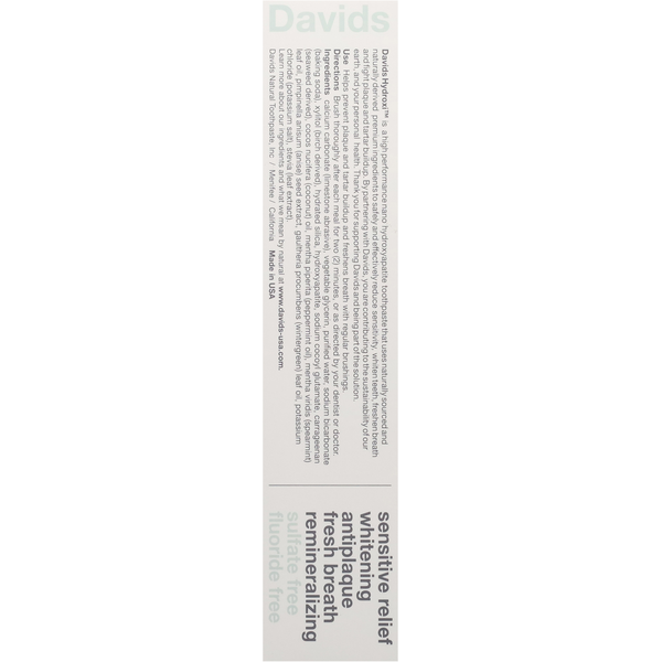 Front of DAVID Sensitive + Whitening Natural Peppermint Toothpaste