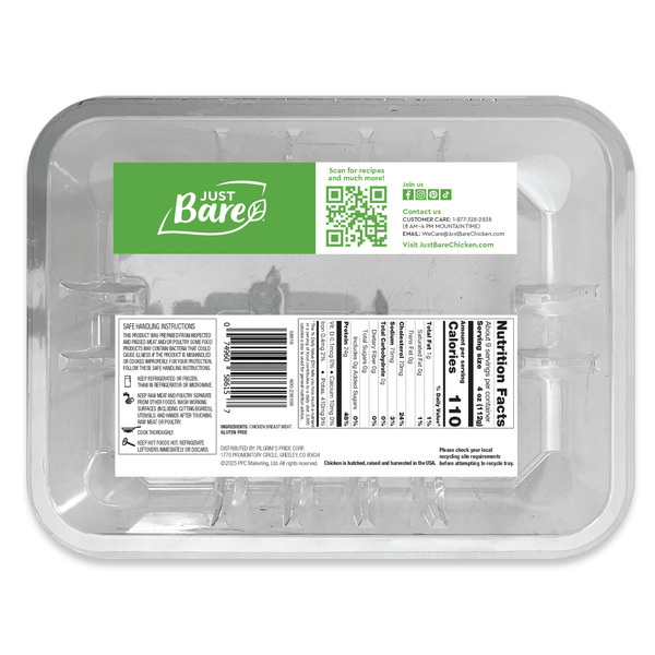 Front of Packaged Poultry Just Bare Brand Boneless Skinless Chicken Breast Fillets