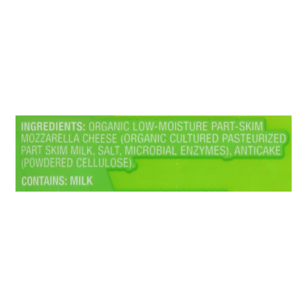 Front of Packaged Cheese O Organics Finely Shredded Cheese, Mozzarella