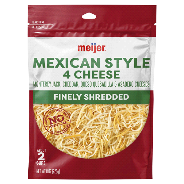 Meijer Mexican 4 Cheese Monterey Jack Cheddar Queso Quesadilla & Asadero Finely Shredded Cheeses