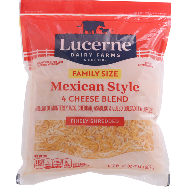 Lucerne Finely Shredded Cheese, 4 Cheese Blend, Mexican Style, Family Size