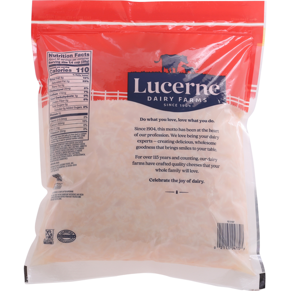 Front of Packaged Cheese Lucerne Finely Shredded Cheese, 4 Cheese Blend, Mexican Style, Family Size