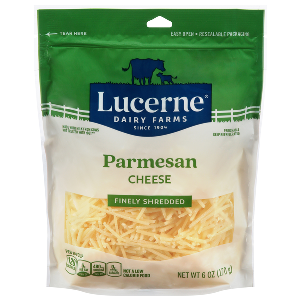 Front of Packaged Cheese Lucerne Finely Parmesan Shredded Cheese