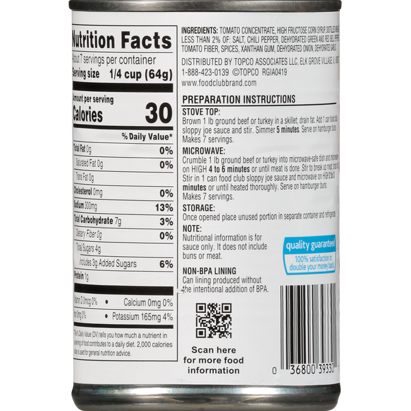 Front of Marinades & Meat Preparation Food Club Sloppy Joe Sauce