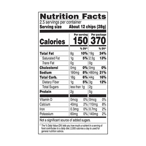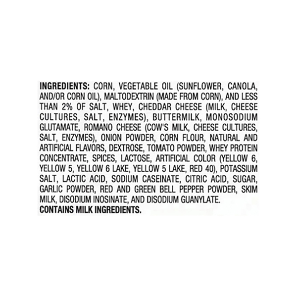 Front of Doritos Tortilla Chips, Nacho Cheese Flavored